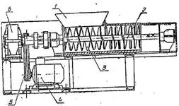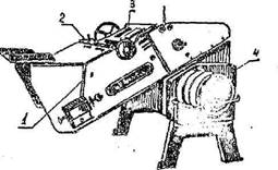 Роллер Б2-ЧР0-6 (рис.2) состоит из стола 3, цилиндра 2 с обоймой, приемного бункера 1 и привода, В средней части стола имеется кювета в форме усеченной шестиугольной пирамиды. Ребристая поверхность кюветы обеспечивает дополнительное сопротивление массе чайного листа и. увеличение раздавливающей способности роллера. В днище кюветы смонтирована дверца для выгрузки окрученного листа из роллера.