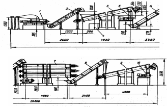 Рисунок 1 – Линия К7-ФКЕ: 1— измельчитель; 2 — элеватор; 3 — обезвоживатель; 4 — жироловка; 5, 10 — дробилки; 6, 8 — элеваторы обогреваемые; 7 — сушильный агрегат; 9 — охладитель.