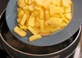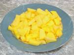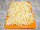 Технология приготовления: Порционные куски сырой рыбы, нарезанные под углом 30о из филе с кожей без костей, посыпают солью, кладут кожей вниз в смазанную маслом (2г от нормы) сковороду, сверху кладут ломтики отварного картофеля, заливают белым (на рыбном бульоне из пищевых отходов рыбы или воде) соусом, поливают сливочным маслом, посыпают сухарями и запекают в жарочном шкафу при температуре 240-250о С в течение 30-40 минут.