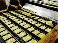 Технология производства вермишели быстрого приготовления включает в себя следующие этапы: замес теста, раскатка, продольная резка, пропаривание, поперечная резка, жарка, охлаждение, фасовка сухих и жидких специй, упаковка вермишели.