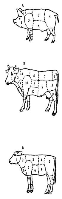 Б. Cxeмa paздeлки тyши кopoвы: