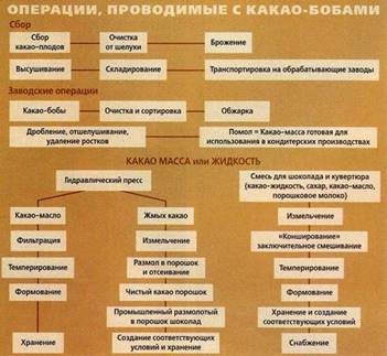 Основным сырьем для производства шоколада и какао-порошка являются какао-бобы – семена какао-дерева, произрастающего в тропических районах земного шара. По происхождению какао-бобы подразделяют на три группы: американские, африканские и азиатские. Наименование товарных сортов соответствует названию района их производства, страны или порта вывоза (Гана, Байя, Камерун, Тринидат).