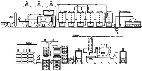 · Аппараты для выработки сырного зерна · Весы · Воздухоочиститель · Дезодоратор · Емкости · Конвейер · Машина для мойки и обсушки полок · Машина для мойки сыра · Машина для сушки сыров · Насосы · Охладитель рассола · Охладительная установка · Парафинер · Пастеризационно-охладительная установка |