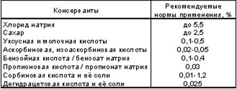 В первую очередь к ним относятся: поваренная соль, нитрит натрия, сахара, хлористый кальций, уксусная, лимонная, молочная, аскорбиновая кислота и их соли.