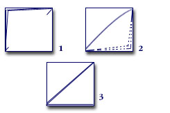Карманчик . Сложенную квадратом салфетку повернуть так, чтобы все открытые стороны были обращены налево (1). Верхние листики перегнуть по диагонали (2) и вложить вовнутрь (3). Эту форму можно использовать, чтобы вложить в салфетку новогоднюю открытку . |