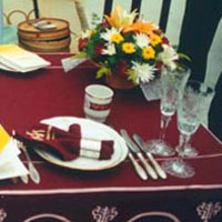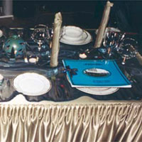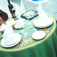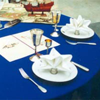 Теперь о том, как накрыть стол. В первую очередь на стол укладывают мольтон - это фланель или иная мягкая ткань (возможно прорезиненная), служащая для защиты столов от воздействия жидкости и горячих блюд, а также препятствующая скольжению скатерти и приглушающая звук переставляемых приборов. Затем расстилают скатерть.
