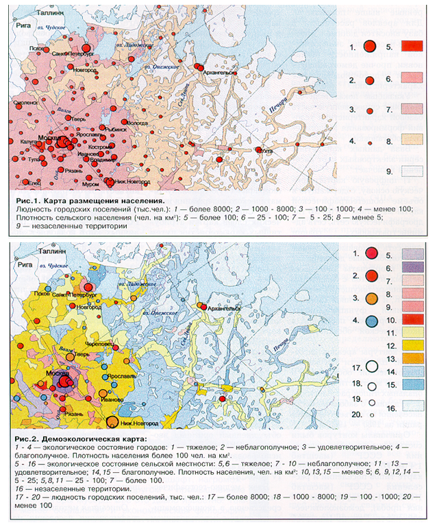 По приведенным в Генеральной схеме расселения на территории России оценкам (одобрена Правительством Российской Федерации, протокол 31 от 15 декабря 1994 г.), каждый десятый город России имеет высокий уровень загрязнения основных природных сред. В этих городах в общей сложности проживает более 50 млн человек. Практически все города с населением более 1 млн человек, а также Санкт-Петербург и Москва должны быть отнесены к i или ii категориям («наиболее высокое» и "очень высокое») экологического неблагополучия. Как правило, это крупные промышленные центры с наиболее опасными в экологическом отношении отраслями производства - металлургией, химией и нефтехимией.