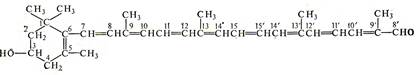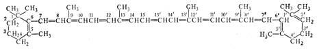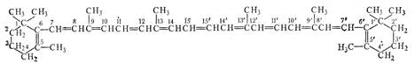 Каротины являются веществами, из которых образуется витамин А. Поскольку ликопин и каротины содержат 40 углеродных атомов, они могут рассматриваться как образованные восемью остатками изопрена. Все без исключения другие природные каротиноиды — производные четырех указанных выше углеводородов: ликопина и каротинов. Они образуются из этих углеводородов путем введения гидроксильных, карбонильных или метоксильных групп или же путем частичной гидрогенизации или окисления. [4]