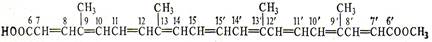 Продуктами окисления каротиноидов с 40 углеродными атомами в молекуле являются кроцетин С20 Н24 О4 , биксин С25 Н30 О4 и β-цитраурин С30 Н40 О2.