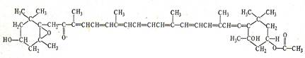 Введение двух оксигрупп в молекулу α-каротина приводит к образованию лютеина С40 Н56 О2 (3,3'-диокси-α-каротина), изомера цеаксантина, обнаруженного наряду с каротином в зеленых частях растений. В результате присоединения к молекуле β-каротина одного атома кислорода с образованием фураноидной структуры получается каротиноид цитроксантин С40 Н56 О, содержащийся в кожуре цитрусовых (рисунок 6).
