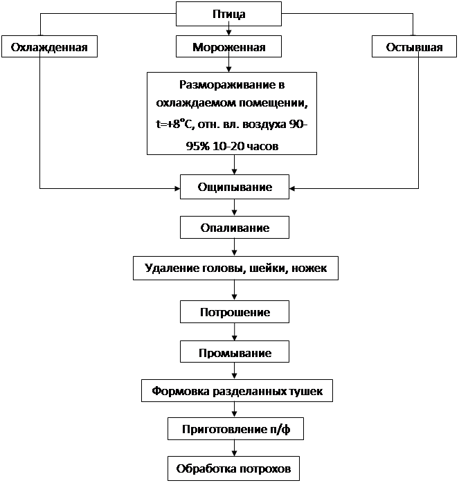 2. Технологическая схема механической обработки сельскохозяйственной птицы, пернатой дичи и кролика. Полуфабрикаты из птицы