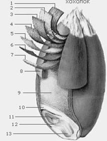 Рис. 1.2. Схема будови зерна кукурудзи різних ботанічних груп