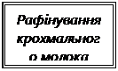 Після подрібнення розпочинається етап термічної обробки картопляної сировини. Подрібнену картоплю направляють у відділення для виділення клітинного соку. Його виділяють на центрифугах з утворенням картопляної кашки, яка представляє липкий тістоподібний продукт. Для подальшого транспортування кашки її розбавляють процесовою водою і направляють на станцію вимивання крохмалю з кашки. Вимивання крохмалю проводять на барабанно-струнних і відцентрово-лопатевих ситах шляхом складних фізико-хімічних перетворень. Після вимивання крохмалю кашка направляється на станцію виділення сокової води, де з основного виробництва виводиться 60-70% вільних розчинних речовин, що містяться в подрібненій картоплі. Далі кашка знову розбавляється водою, отримуючи при цьому сокову воду. При знаходженні на повітрі сокова вода під дією фарбувальних речовин забарвлюється в темно-коричневий колір. Для знебарвлення цього продукту використовують центрифуги, видаляючи при цьому більшу частину сокової води. Для цього використовують горизонтальні відстійні центрифуги. Після цього молоко направляють на рафінування. Рафінування – одна з основних технологічних операцій крохмального виробництва. Молоко, що згущують, після виділення з нього сокової води на центрифугах розбавляють свіжою водою. Цю суспензію подають на перший етап рафінування, де молоко набуває концентрації сухих речовин 10-12% і вмісту дрібної мезги 1-1,5% по масі сухих речовин молока. Потім молоко направляють на друге (контрольне) рафінування, де молоко набуває концентрації сухих речовин 6-8%, а дрібної мезги – не більше 0,5% до маси сухих речовин молока.