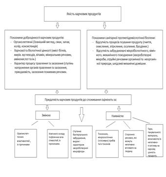 Експертиза харчових продуктів → ознайомлення з транспортною документацією, сертифікатом → загальний огляд продуктів, партії на місці → вибір середніх зразків для лабораторних досліджень → проведення комплексних досліджень → узагальнення результатів дослідження.