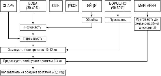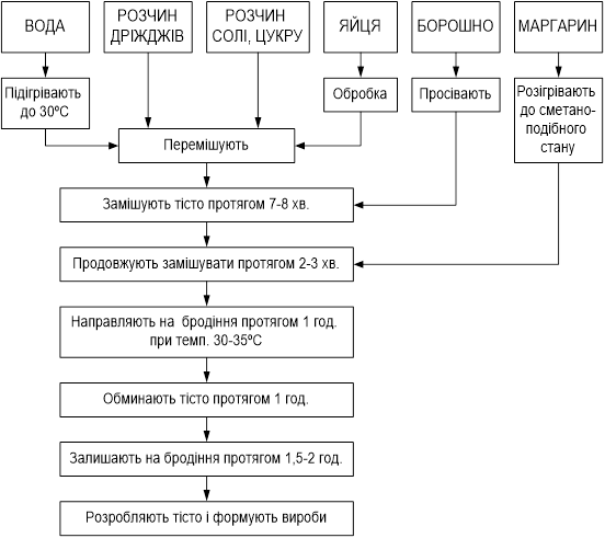 Технологічний процес приготування хлібобулочних виробів – це частина виробничого процесу, що складається з операцій, безпосередньо пов’язаних зі змінами стану, зовнішнього вигляду, розміру, форми, смаку, запаху, кольору, консистенції та інших властивостей сировини, продуктів і перетворення їх у готові вироби. Технологічному процесі відбувається безпосередній фізичний, хімічний і біохімічний вплив на стан і властивості відповідної сировини, продуктів, напівфабрикатів з використанням інвентарю та обладнання.