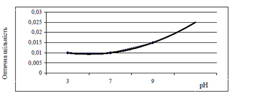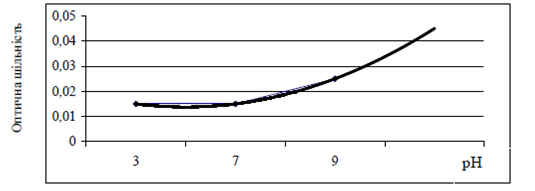 Рисунок 4 – Залежність кольоровості розчину, виготовленого з осаду екстракту, від рН води