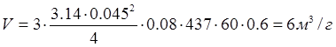 Продуктивність гомогенізатора. V, м3 /г, розраховується за формулою:
