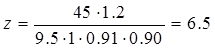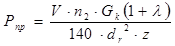 Необхідне для передачі заданої потужності число пасків, z, розраховується за формулою: