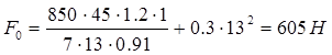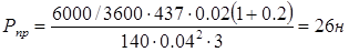 Рм =0.07·3.14·0.045·0.15·0.04·20·106 =1187 Н