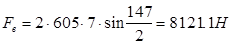 Сила діюча на вал, Fв , Н, розраховується за формулою: