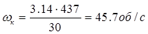 Кутова швидкість колінчастого валу, ώк , об/с, розраховується за формулою: