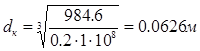 Приймаю діаметр колінчатого вала dк =0.063 м .