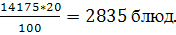 По = 4725*3 = 14175 блюд – обед,