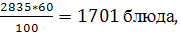 Пу = 1350*2 = 2700 блюд – ужин,