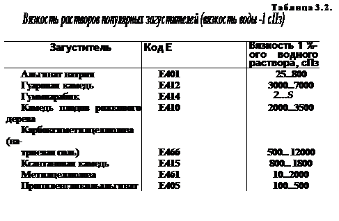 Вещества, регулирующие консистенцию продуктов. Одной из важных, узнаваемых характеристик пищевого продукта (наряду с цветом, ароматом и вкусом) является его консистенция. Продукты часто представляют собой коллоидные системы: эмульсии, пены, суспензии, гели. Для их создания необходимы вещества с определёнными свойствами: поверхностно-активными, загущающими, желирующими.