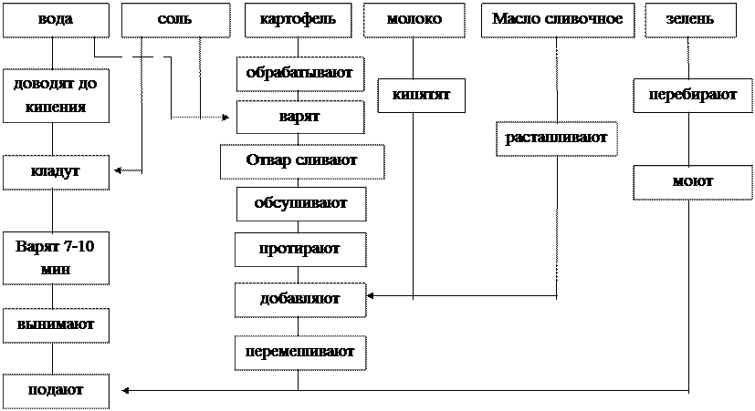 - составлены технологические карты и технологические схемы 4х – блюд согласно меню, схема со спецификацией операций одного блюда