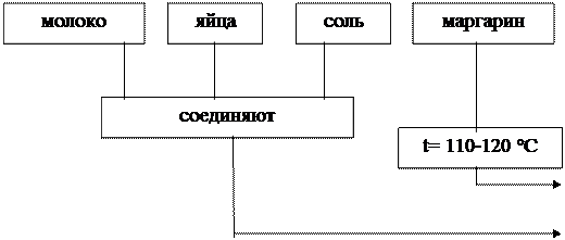 | Яйца Молоко Маргарин Лук репчатый Маргарин Масса пассерованого лука Масса жареного омлета Масло сливочное Соль Зелень |