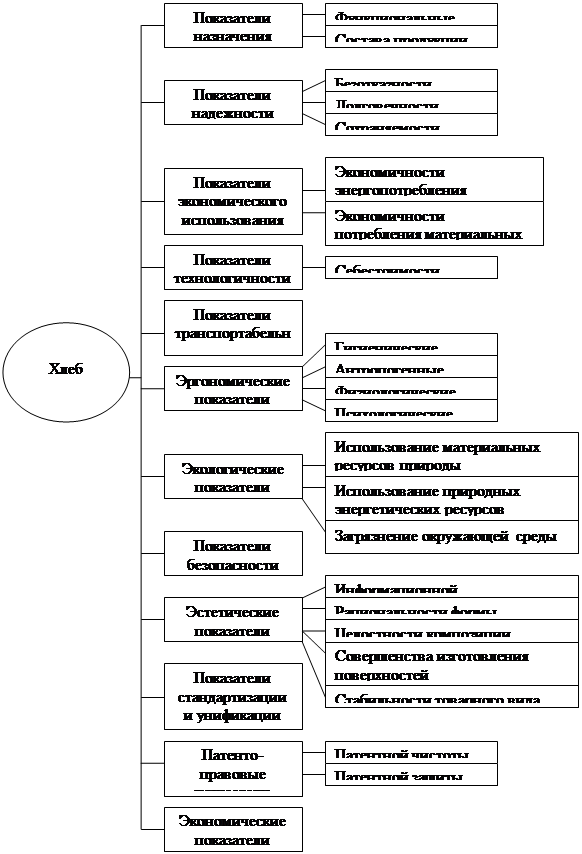 1) функциональные -характеризуют полезный эффект от эксплуатации или потребления продукции и прогрессивность технических решений, закладываемых в продукцию (калорийность хлеба);