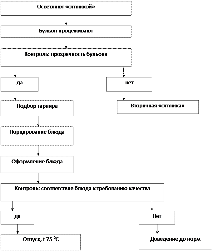 Требования к качеству: бульон прозрачный, золотисто-желтого оттенка. . Вкус – в меру соленый, с ярко выраженным ароматом. На поверхности не должно быть блесток жира.