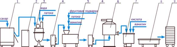 Технологическая схема производства восточных сладостей: лукум сбивной, рахат-лукум