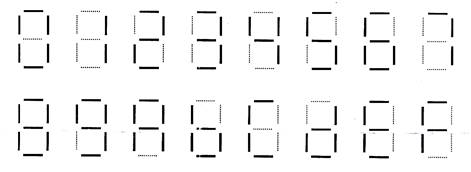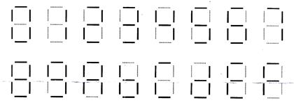 Каждый может светиться либо не светиться, в зависимости от значения соответствующей выходной функции, управляющей его свечением. Вызывая свечение элементов в определенных комбинациях, можно получить изображение цифр «0» - «9» и букв «A» – «F» (рис. 2.1.2).