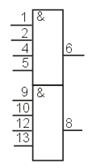 Микросхема представляет собой два логических элемента 4ИЛИ-НЕ со стробированием. Если на входе стробирования присутствует низкий уровень, то вывод соответствующего элемента будет переведен в высокий уровень, независимо от состояния других входов. Если на входе стробирования присутствует высокий уровень, то элемент работает как обычный 4ИЛИ-НЕ (рис. 3.6.1).