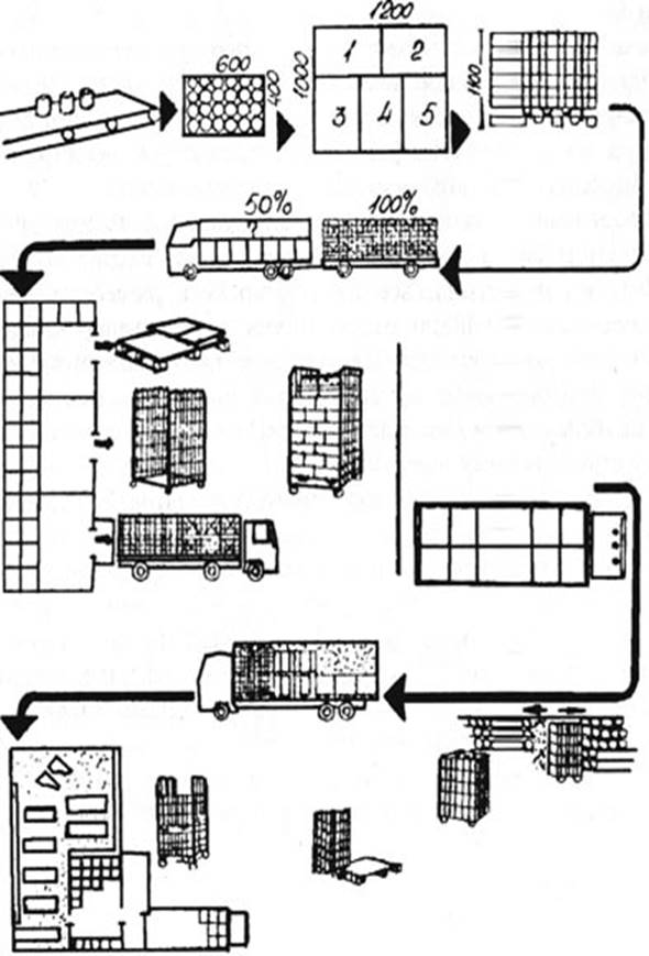 ∙ компоновка торговых помещений производится по ходу движения посетителей; предусматривается возможность сокращения их передвижения и обеспечение эвакуации людей в случае пожара. Общая производственная структура может быть условно представлена на рис. 1.