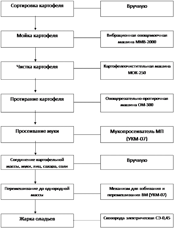 5. Машинно-аппаратурная схема приготовления оладьев из картофеля
