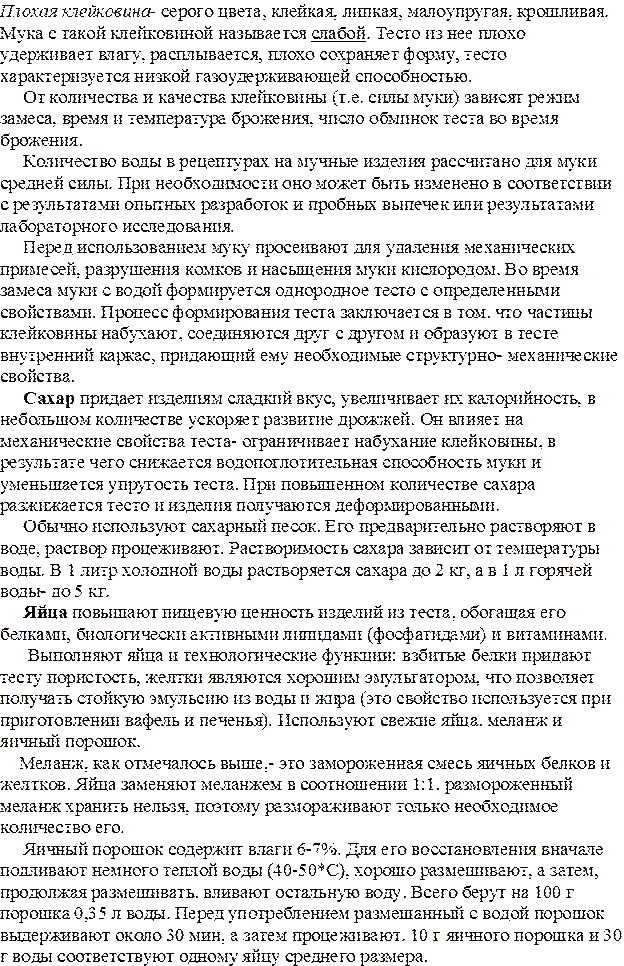 Мука. На ПОП используют главным образом пшеничную муку высшего и 1-го сортов. Важнейшими показателями муки, определяющими её технологические свойства, являются влажность, содержание и качество клейковины.