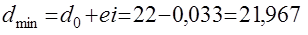 б) Рассчитаем предельные размеры вала Æ22h8.