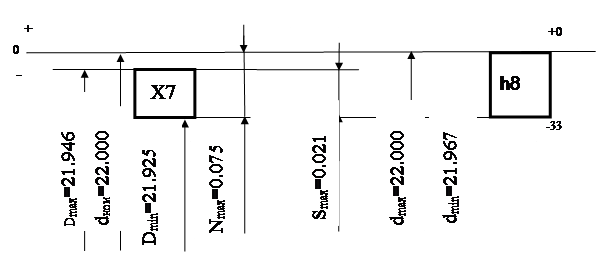 Определяем предельные отклонения и размеры отверстия Æ22X7: