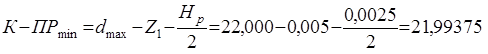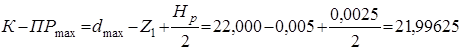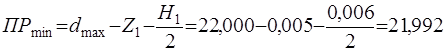 Определяем предельные размеры проходного и непроходного калибра для отверстия Æ22X7.