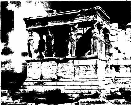 Последней постройкой Акрополя был храм, посвященный Афине, Посейдону и мифическому царю Эрехтейю, так называемый Эрехтейон (421—406 гг. до н. э.). Храм имеет конструктивную особенность: подчиняясь рельефу места, архитекторы должны были его восточную часть сделать на 3 м выше западной. На одном из трех портиков храма антаблемент поддерживают вместо ионических колонн женские фигуры — кариатиды.