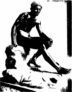 В скульптуре на смену мужественности и суровости образов строгой классики приходит интерес к душевному миру человека, и в пластике находит отражение более сложная и менее прямолинейная его характеристика. Так, в единственной дошедшей до нас в подлиннике скульптора Праксителя мраморной статуе Гермеса (покровителя торговли и путешественников, а также вестника, «курьера» богов; статуя исполнена около 330 г. до н. э. и была найдена в ХIX в. в Олимпии) мастер изобразил прекрасного юношу, небрежно облокотившегося на пень, в состоянии покоя и безмятежности. Задумчиво и нежно он глядит на младенца Диониса, которого держит на руках. На смену мужественной красоте атлета V в. до н. э. приходит красота несколько женственная, изящная, но и более одухотворенная. На статуе Гермеса сохранились следы древней раскраски: красно-коричневые волосы, серебряного цвета повязка. Особой славой пользовалась другая скульптура Пракси-теля — статуя Афродиты Книдской. Это было первое в греческом искусстве изображение обнаженной женской фигуры. Статуя стояла на берегу полуострова Книд, и современники писали о настоящих паломничествах сюда, чтобы полюбоваться красотой богини, готовящейся войти в воду и сбросившей одежды на стоящую рядом вазу. Оригинал статуи Афродиты Книдской, к сожалению, не сохранился. Героям Праксителя не чуждо лирическое чувство, отчетливо выраженное, например, в его «Отдыхающем сатире». Подобные черты развились еще ранее, в пластике учеников фидиевской школы, достаточно указать «Афродиту в садах» Алкамена, рельефы балюстрады храма Нике Аптерос или надгробие Гегесо неизвестных мастеров. Но в образах поздней классики это лирическое начало соседствует с чертами душевной взволнованности, томления, грусти, задумчивости, созерцательности.