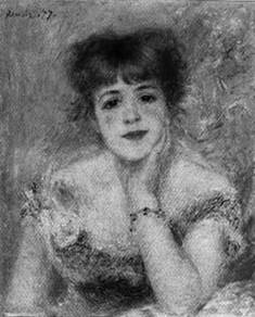 Ренуар родился в городе Лимож в феврале 1841 года. Еще ребенком он работал на фарфоровой фабрике, расписывая изделия из фарфора, в семнадцать копировал рисунки на абажурах, веерах и шторах. А уже в восемнадцать Ренуар был принят вхудожественную академию. Впервые работы Ренуара были выставлены в Париже в 1864 году, но слава и признание пришли к нему гораздо позже, в 1874 году на первой выставке художников новой школы импрессионизма.С 1877 года у Ренуара уже было достаточно поклонников, и художник не испытывал нужды ни в чем, впервые в жизни он мог заниматься тем, что его привлекало больше всего: писать для себя и путешествовать. Поездка в Италию повлияла на творчество Ренуара, это заметно по его картине «Зонтики», он начал ее в типичной импрессионистской технике, а после приезда во Францию снова взялся за работу, но фигуры девочек поражают мягкостью линий и свежестью цвета.Одно из значительных полотен Ренуара – «Бал в саду Мулен де ла Галет». Художник как будто зафиксировал свое мгновенное впечатление от пестрой подвижной массы людей. Трудно на расстоянии рассмотреть каждый предмет во всех деталях, и Ренуар рисует лишь в самых общих чертах, словно смотрит издали. Он, как и другие импрессионисты, отказался от тщательного выписывания формы каждого предмета, сосредоточив внимание на передаче этой формы в трепетных бликах того или иного освещения. «Портрет Жанны Самари» |