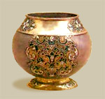 Московские мастера XVII века достигли совершенства в искусстве эмали. Они не только умели покрывать эмалью гладкую поверхность, сканный орнамент с мелкими лепестками и листочками, как это делали московские мастера XV века, но и заливали эмалью округлые стенки сосудов, покрывали ею чеканный орнамент и почти скульптурные чеканные изображения высокого рельефа. Мастера использовали как глухие тона эмали разных оттенков, однотонные, с нанесенными на них пятнами, точками, усиками, так и прозрачные эмали, сквозь которые просвечивает золотой фон.