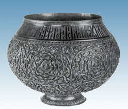 Чеканный орнамент XVI века отчетливо выделяется на матовом канфаренном фоне, всегда ритмичен и имеет четкий рисунок, который, правда, к концу века заметно усложняется. Характерные особенности чеканных изображений этого столетия – мягкость, сглаженность рельефа, обобщенность форм и многоплановость изображений сближают их с современной им резьбой по дереву. В чеканке и басме московские мастера XVI века изображают не только отдельные фигуры, но и сложные многофигурные композиции. С первых лет XVII века в чеканные узоры свободно вьющихся трав вводятся рельефные гладкие точки, заполняющие пустоты. В дальнейшем чеканные травы вытягиваются, их сложные узоры сплошь обволакивают стенки изделий, оставляя лишь едва заметные промежутки для матового проканфаренного фона. Так же как и в деревянной резьбе, в чеканке XVII века ярко выражено стремление к передаче объемных трехмерных форм – это приводит даже к использованию особого приема, когда в общею композицию включают отдельно вычеканенные скульптурные детали.