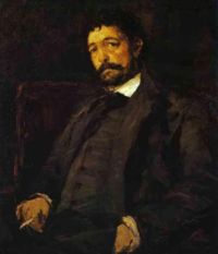 Портрет Мазини, знаменитого итальянского тенора, неоднократно выступавшего в мамонтовской Частной опере, является без сомнения лучшим. При максимально ограниченной цветовой гамме (которой Коровин, как уже рассказывалось, увлекался в первой половине 1890-х годов) мало можно найти портретов большей художественной выразительности. Достаточно привести слова Шаляпина о Мазини и сразу же становится ясна точность попадания и живописная сила коровинской кисти: "Пел он действительно, как архангел, посланный с небес для того, чтобы облагородить людей. Такого пения я не слыхал никогда больше. Но он умел играть столь же великолепно!". Одного взгляда достаточно, чтобы понять - перед нами прекрасный трагик и "серафим от бога", по словам Коровина [4].