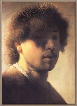 На автопортрете 1629 года яркий луч высвечивает безбородое пытливое лицо, оттененное кружевным воротником. А вот автопортрет того же года, хранящийся в Гааге, более официален. На маленькой картине «Художник в своей мастерской» (1629 г.), которую долгое время приписывали Герриту Доу, нашему взору открывается лейденская мастерская Рембрандта, со столом, мольбертом, палитрой и ступкой для растирания красок. Себя художник изобразил непривычно далеко от картины, словно желая дать зрителю почувствовать, как он сам видит и понимает живопись.