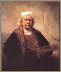 В более зрелых портретах иной раз выражена душа художника, а иной раз тщательно выписан его наряд. «Автопортрет» 1640 года, картина необычайно изысканная и гармоничная, запечатлел тридцатичетырехлетнего Рембрандта, занявшего прочное положение в Амстердаме. Ориентирами для художника были тициановский «Портрет дворянина», ныне хранящийся в Лондоне, а в ту пору находившийся в коллекции друга Рембрандта португальского еврея Альфонсо Лопеса, и «Портрет Бальдассара Кастильоне» Рафаэля. В сближении с итальянскими мастерами чувствуется вызов со стороны Рембрандта, словно подчеркивающего непривычным нарядом XVI века свою духовную близость с великими предшественниками. Он пишет себя в костюмах, по обычаю своей мастерской, где хранились самые разнообразные наряды для моделей, перечисленные в инвентарных описях, - «Автопортрет» 1658 года из нью-йоркской коллекции Фрика. Но ему нравится также изображать себя в одежде амстердамского торговца с цепью, подвесками и меховой отделкой, или художника, осознающего свою роль и положение в обществе, как на «Автопортрете за мольбертом» (1660 г.) или на другом автопортрете с палитрой и кистями из лондонского Кенвуд-Хауса, – скромная одежда, на голове простой белый берет, волевое, умное выражение морщинистого лица. А взгляд властный, гордый и ставший очень усталым в последние годы, омраченные материальными невзгодами и семейными неурядицами.